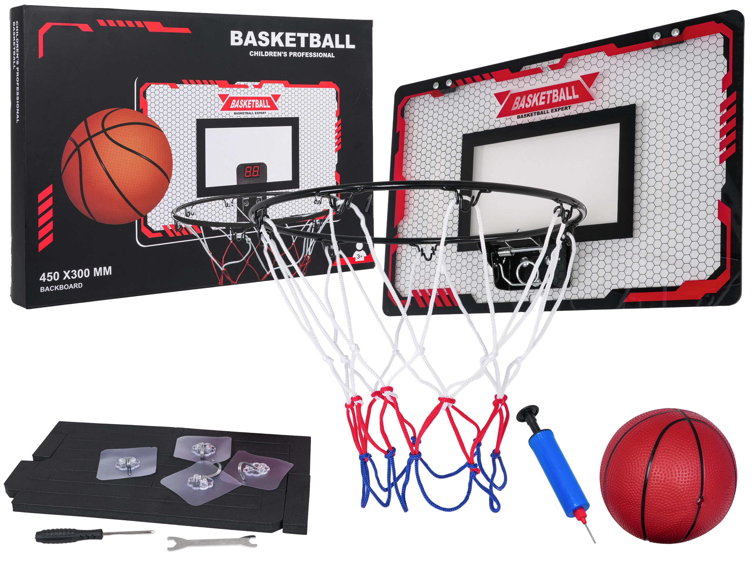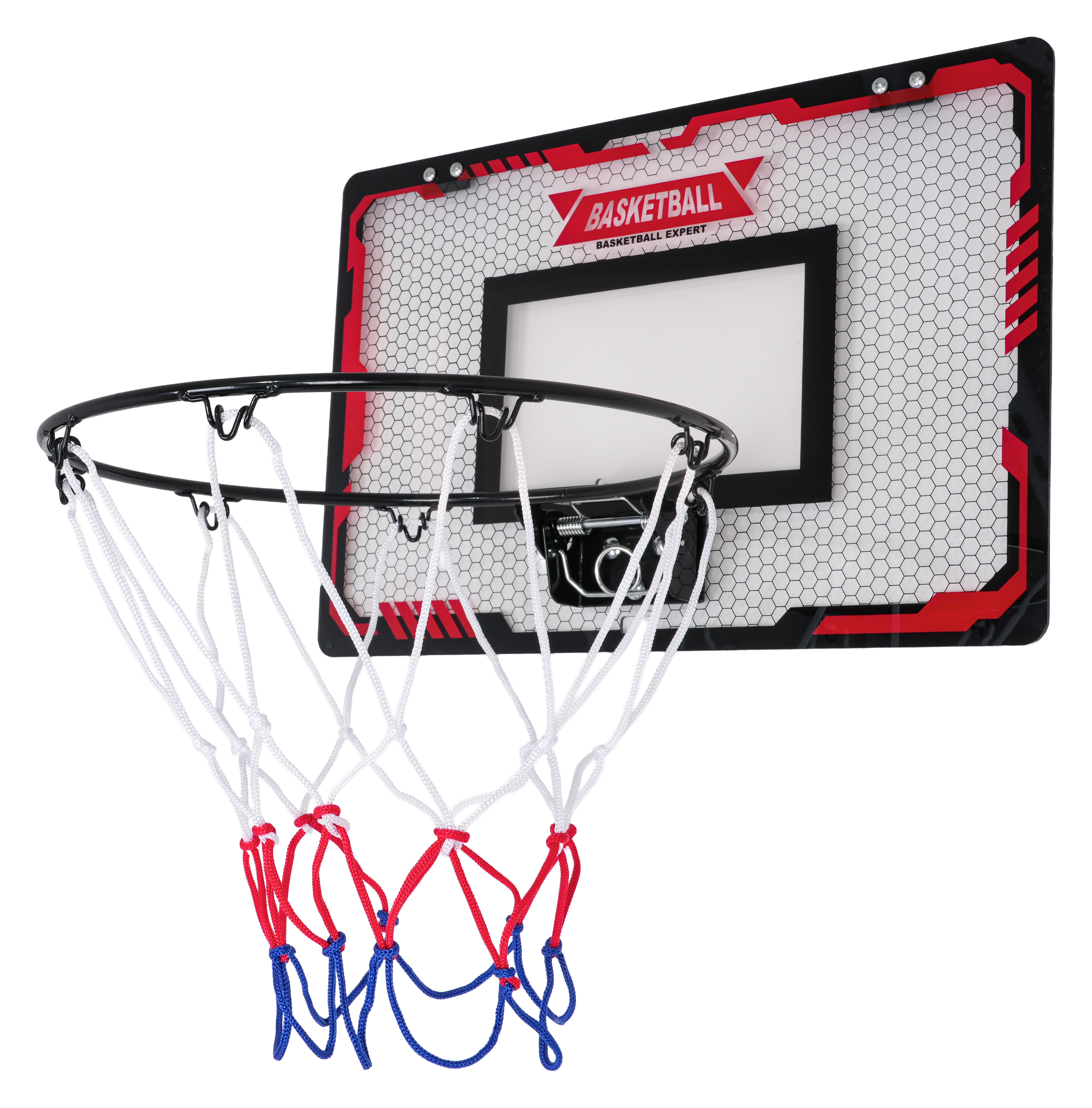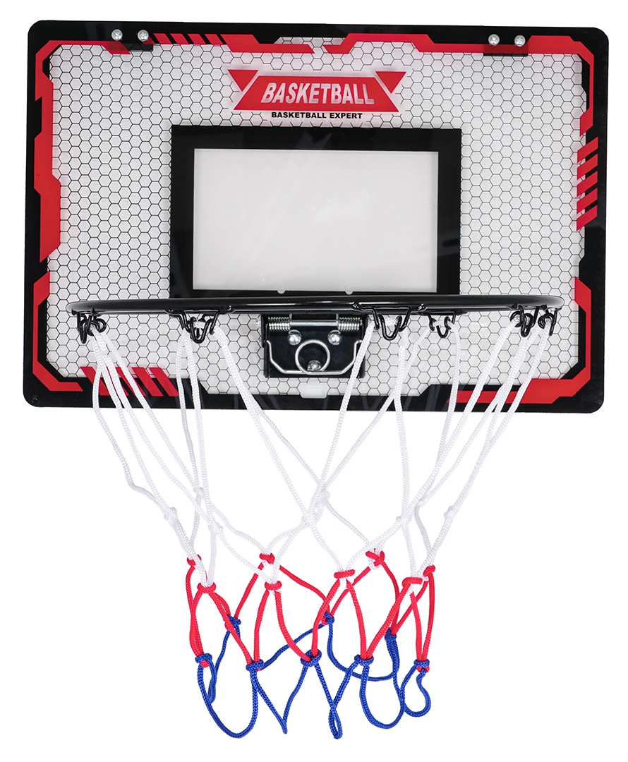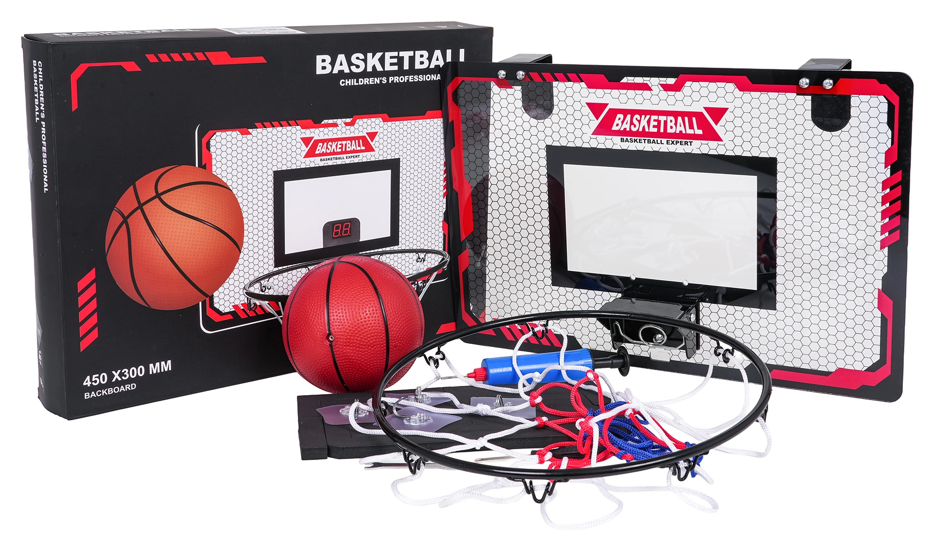 Il set include tutto per giocare subito: tabellone in plastica robusta, anello metallico con rete, pallone in gomma, pompetta con ago e kit di montaggio completo con cacciavite e chiave. Ideale per cameretta, corridoio o sala giochi – favorisce coordinazione occhio-mano, precisione e spirito competitivo.