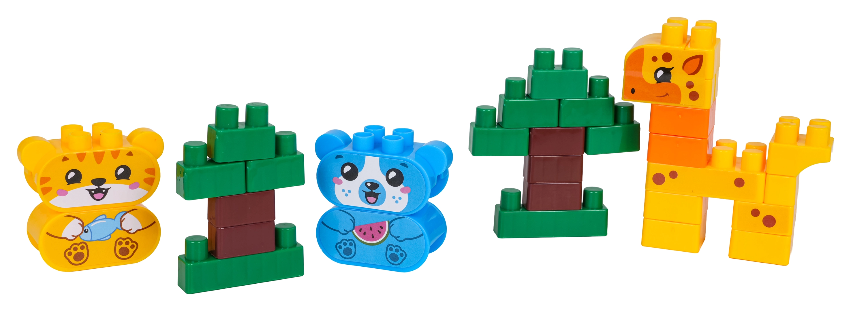 I blocchi favoriscono lo sviluppo della fantasia, la coordinazione occhio–mano e il gioco creativo. Nella confezione sono inclusi anche adesivi decorativi per rifinire l’aspetto degli animaletti e delle scenografie.