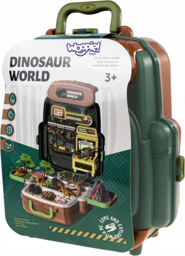 La valigetta Dinosaur World trasporta i bambini nell’affascinante era dei dinosauri. Una volta aperta, crea una scena di gioco con terreno, alberelli e accessori in cui i piccoli possono inventare le proprie storie. Il set include figure colorate di varie specie di dinosauri, uova, un vulcano e accessori a tema esplorazione di fossili.