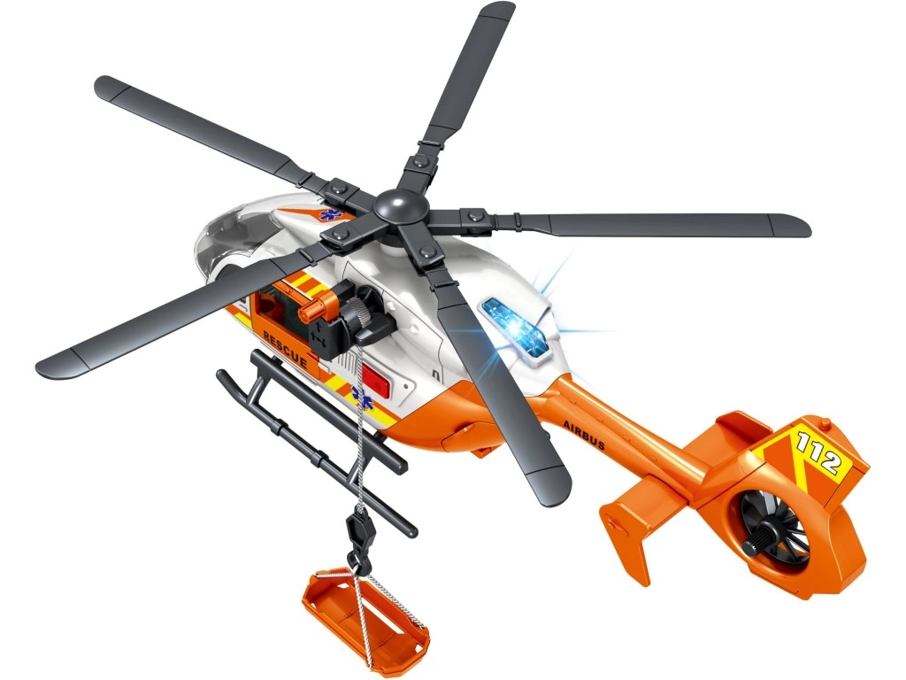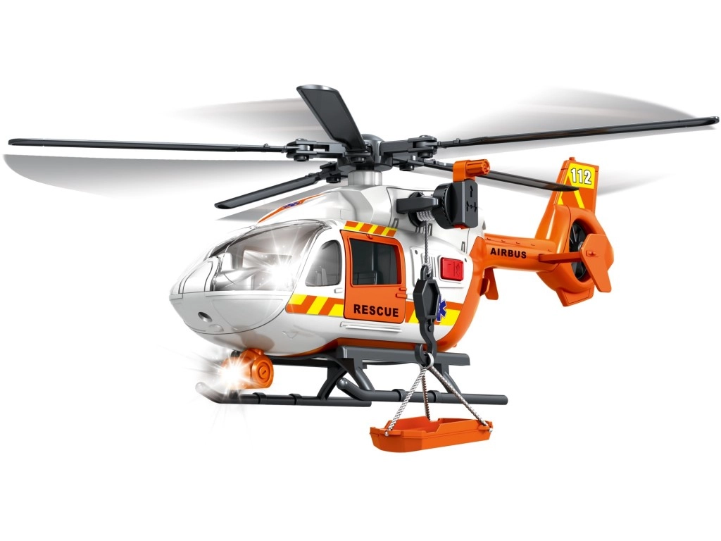 Il modello è realizzato in plastica resistente e con le dimensioni di 34,5 × 12 × 18 cm è perfetto per le mani dei bambini. Le scritte RESCUE ben visibili, il numero 112 e la cabina trasparente favoriscono il gioco realistico da soccorritori. Ideale per sviluppare motricità fine, fantasia e cooperazione.