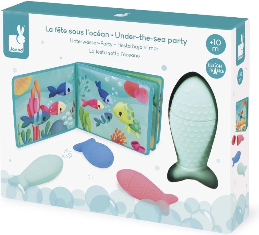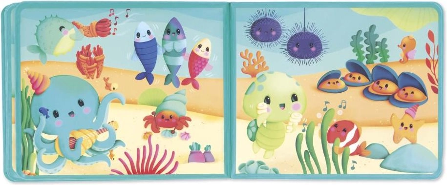 Scoprite il vivace mondo sottomarino con il libro da bagno “Festa oceanica”, dove i bambini incontreranno tartarughe, pesci pagliaccio, gamberetti e stelle marine. Tre adorabili pesciolini per l’acqua rendono la storia davvero viva: premendo il pancino spruzzano acqua e trasformano il bagnetto in un gioco gioioso.