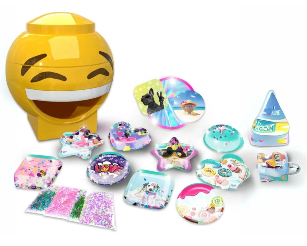 Nel set trovi tutto il necessario: dalla macchina per produrre adesivi a stampi, sagome e pellicole di copertura. Diverse decorazioni come glitter, strass e sprinkle danno agli adesivi un aspetto accattivante e una texture originale.