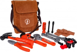Martello, pinze, chiave inglese, cacciavite con bit e chiave a rullino sembrano veri, ma sono leggeri e sicuri per le mani dei bambini.