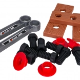 Viti, dadi e listelli con fori permettono ai bambini di unire i pezzi, sperimentare costruzioni e sviluppare coordinazione e pensiero logico.