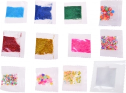 - Glitter, paillettes, perline in tonalità blu e trasparenti