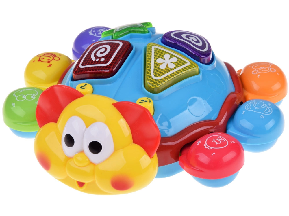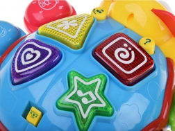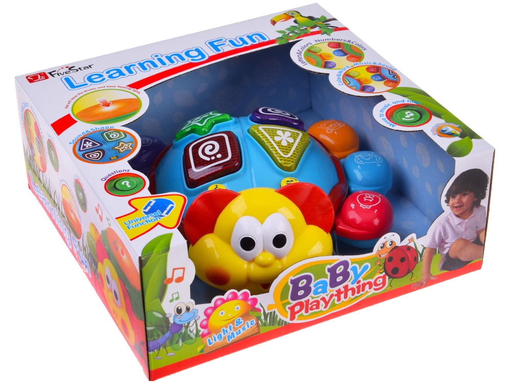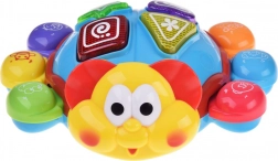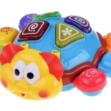 Colorato maggiolino interattivo che motiva i bambini a strisciare e gattonare, riproduce allegre melodie, lampeggia con lucine e, grazie al sensore intelligente degli ostacoli, cambia direzione. Premendo i grandi pulsanti, i bambini imparano i colori, gli animali e il principio causa–effetto. Giocattolo ideale per un divertimento attivo e lo sviluppo della motricità fine.