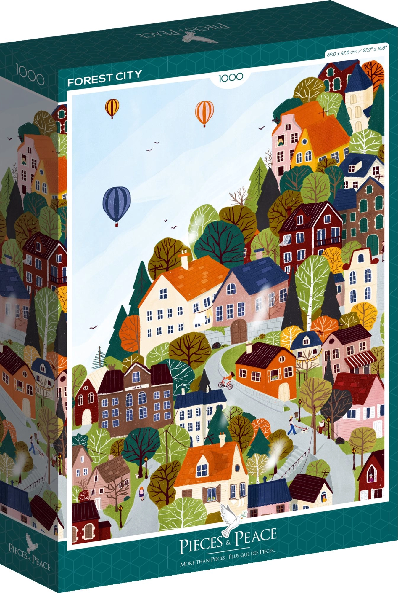 Goditi relax e creatività con il puzzle Città del Bosco di PIECES & PEACE da 1000 pezzi. Una volta completato, otterrai un’immagine suggestiva di 47,8 × 69 cm, ideale da incorniciare o come regalo per gli amanti dei puzzle.