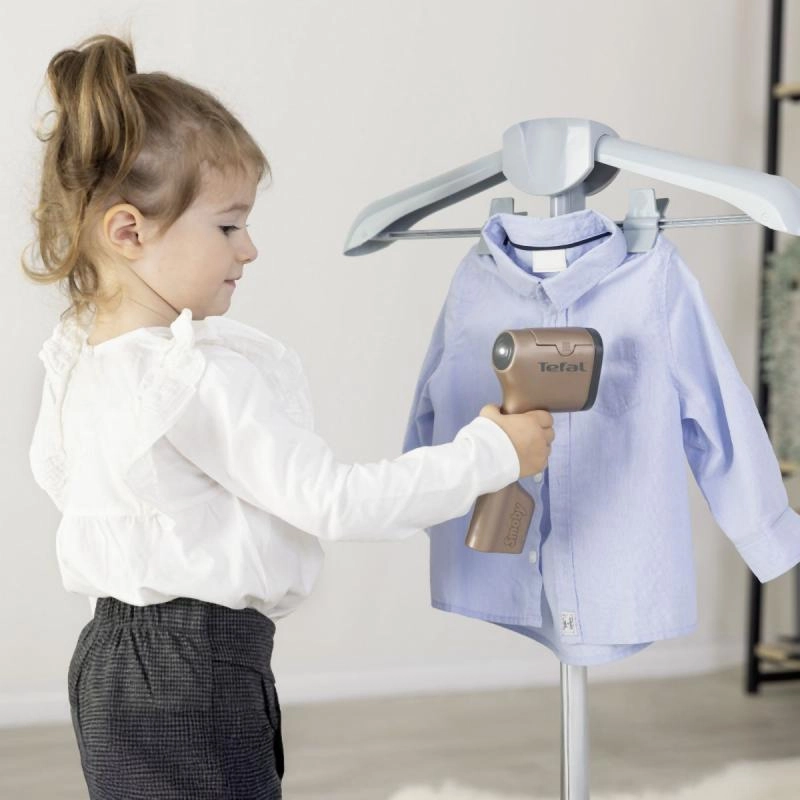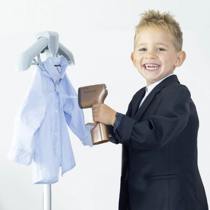 Il vaporizzatore manuale per abiti per bambini di TEFAL offre un gioco realistico e sviluppa la motricità fine e il senso dell’ordine. Grazie al semplice controllo a pulsante e al vero vapore, i bambini possono provare in sicurezza a “levigare” le pieghe sui vestitini delle bambole o sui costumi per bambini.