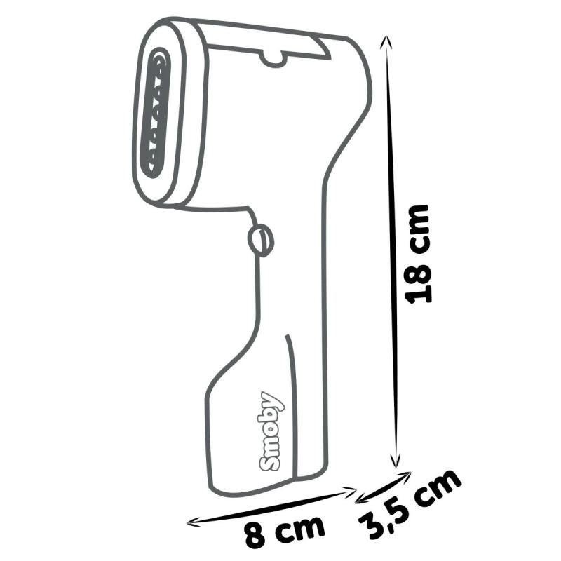 Le dimensioni compatte 3,5 × 8 × 18 cm e la forma a pistola garantiscono una presa comoda e un controllo facile anche per i più piccoli.