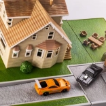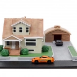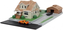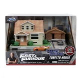 Riproduzione fedele della Casa di Toretto con abitazione, garage, vialetto e giardino su un unico basamento – ideale per l’esposizione.