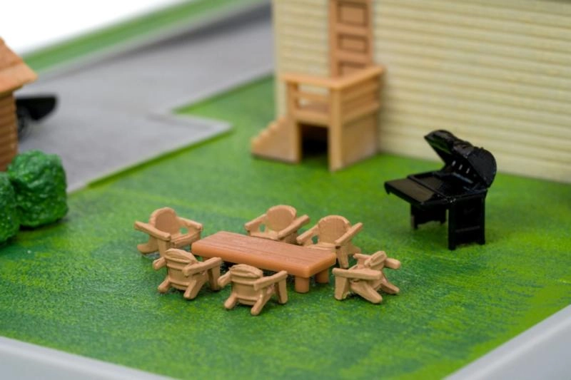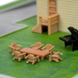 Sono incluse 2 nano auto in metallo in scala per diorami – Dodge Charger e Toyota Supra – con ruote libere e pneumatici in gomma per un movimento fluido. L’atmosfera è completata da barbecue e arredi da giardino per scene e foto realistiche.