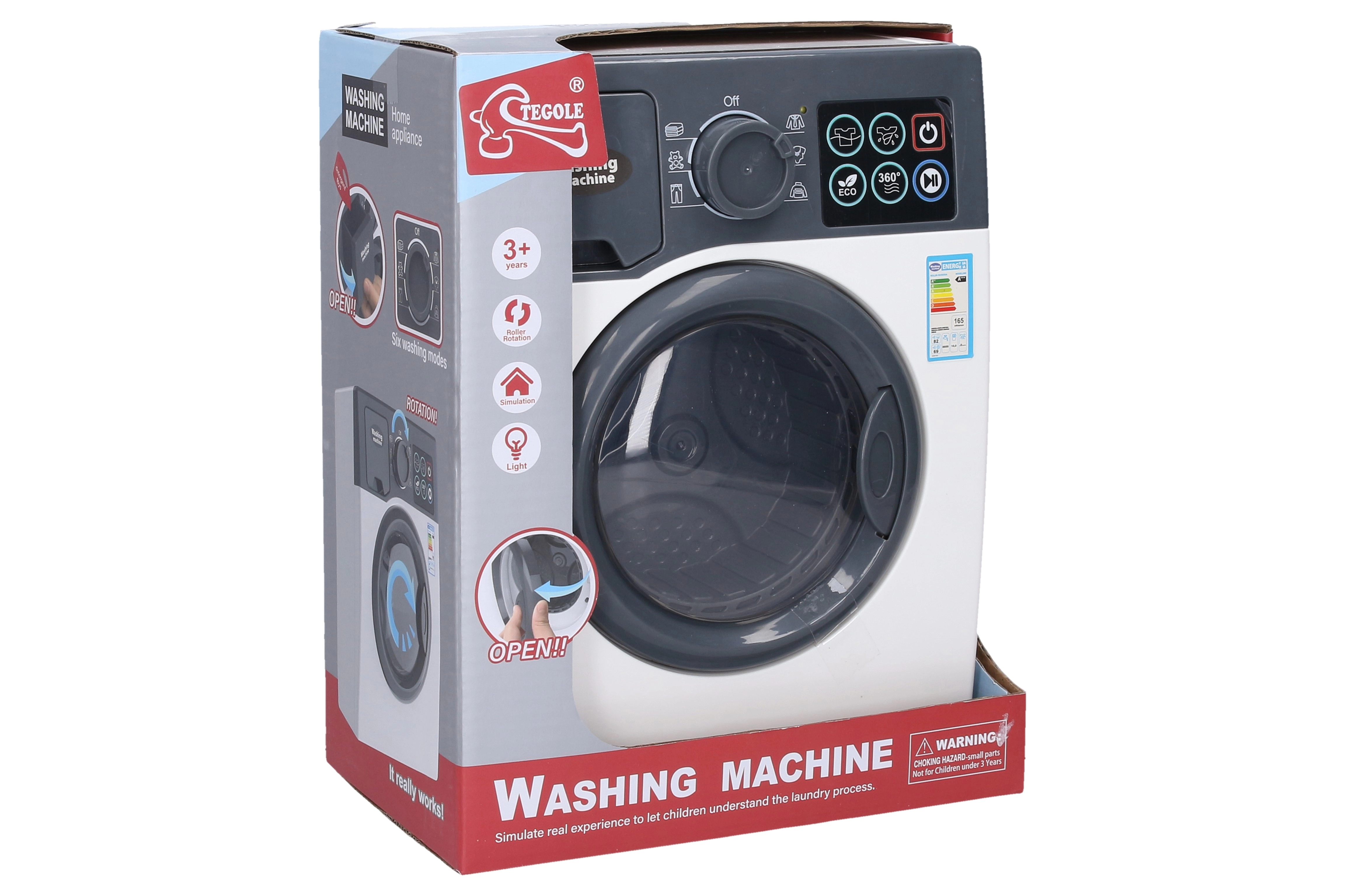 Questa lavatrice per bambini offre un’esperienza di lavaggio autentica in modo sicuro e divertente. Basta premere il tasto on/off, scegliere il programma e avviare il lavaggio con il pulsante go/stop. Grazie agli effetti, simula il funzionamento reale della lavatrice e sviluppa la fantasia e le abilità motorie dei bambini.