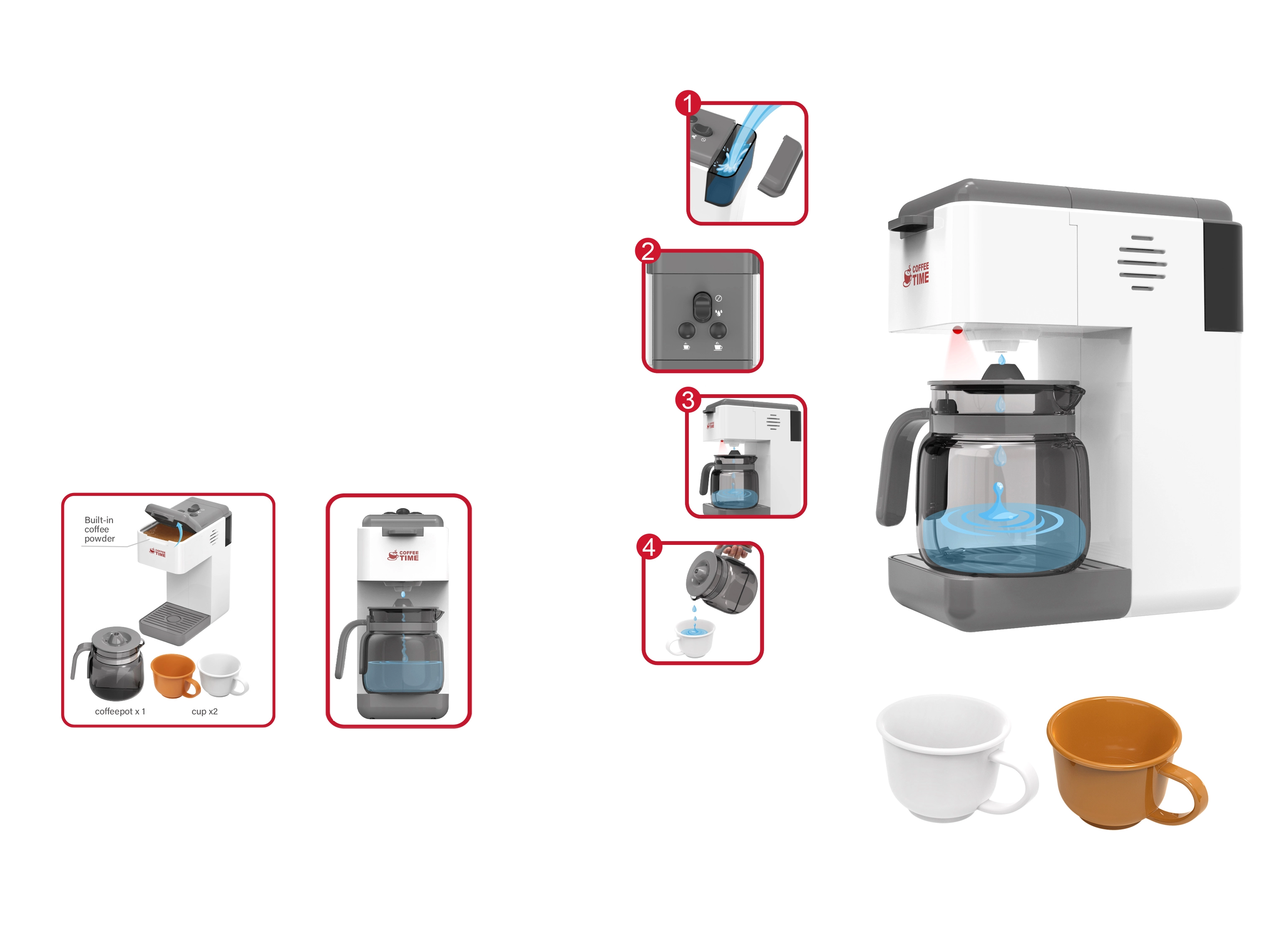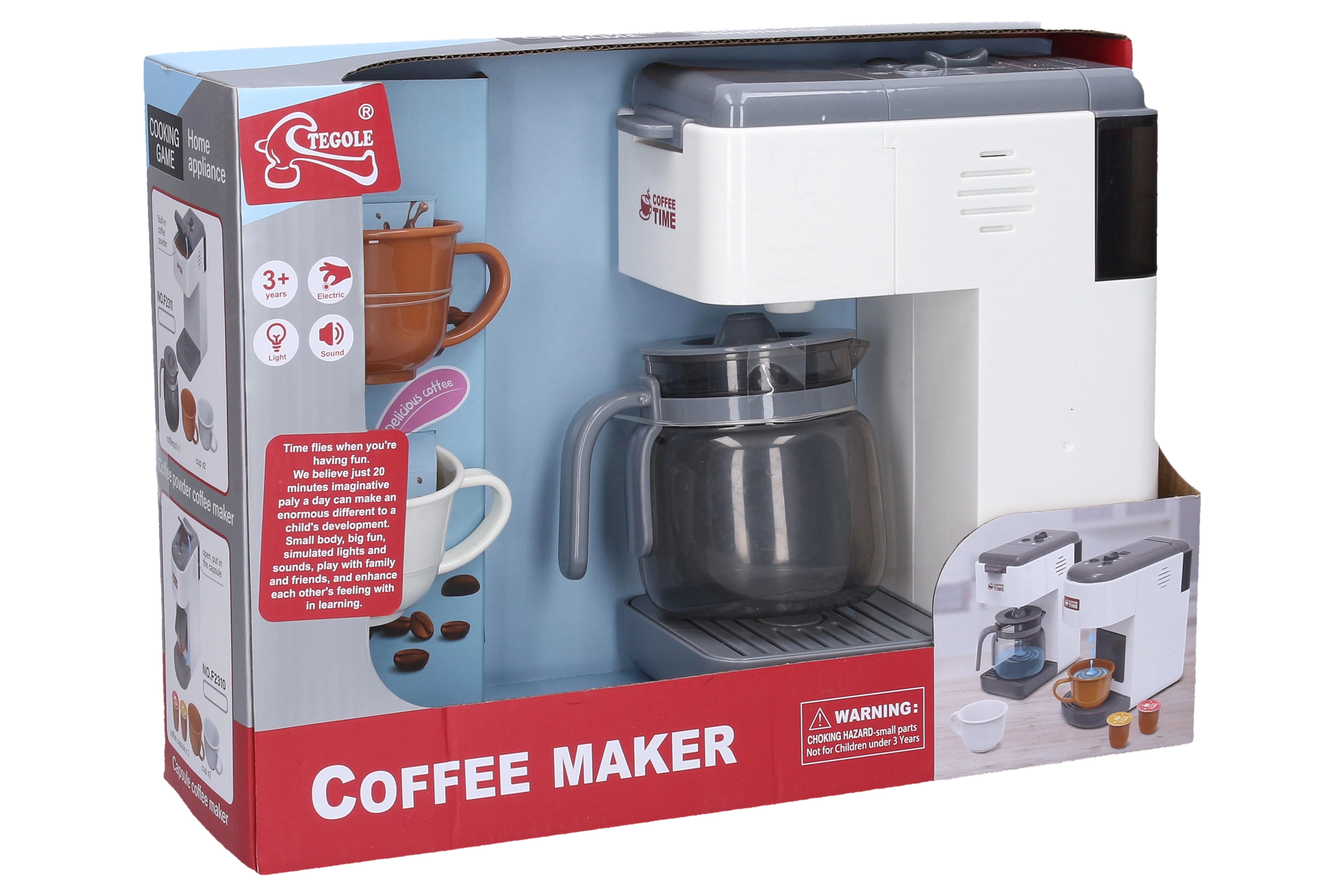 Scopri la divertente macchina del caffè per bambini con caraffa, che simula la preparazione reale del caffè. Basta riempire il serbatoio d’acqua e la macchina riempirà automaticamente la caraffa. Grazie agli effetti luminosi e sonori il gioco è ancora più realistico, mentre il pulsante on/off garantisce un controllo facile anche per i più piccoli.