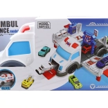 Scopri il divertimento e il gioco creativo con questa ambulanza pieghevole, che si trasforma in una base di soccorso. Include 2 piccole auto di soccorso, ruote libere per un movimento fluido e resistente materiale plastico. Giocattolo ideale per bambini dai 3 anni.
