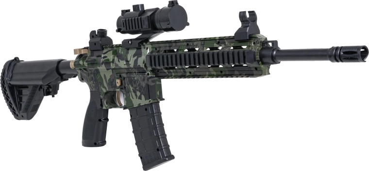 Passa tra fuoco automatico rapido e modalità manuale precisa a seconda della situazione. Scelta versatile per allenamento e battaglie dinamiche.