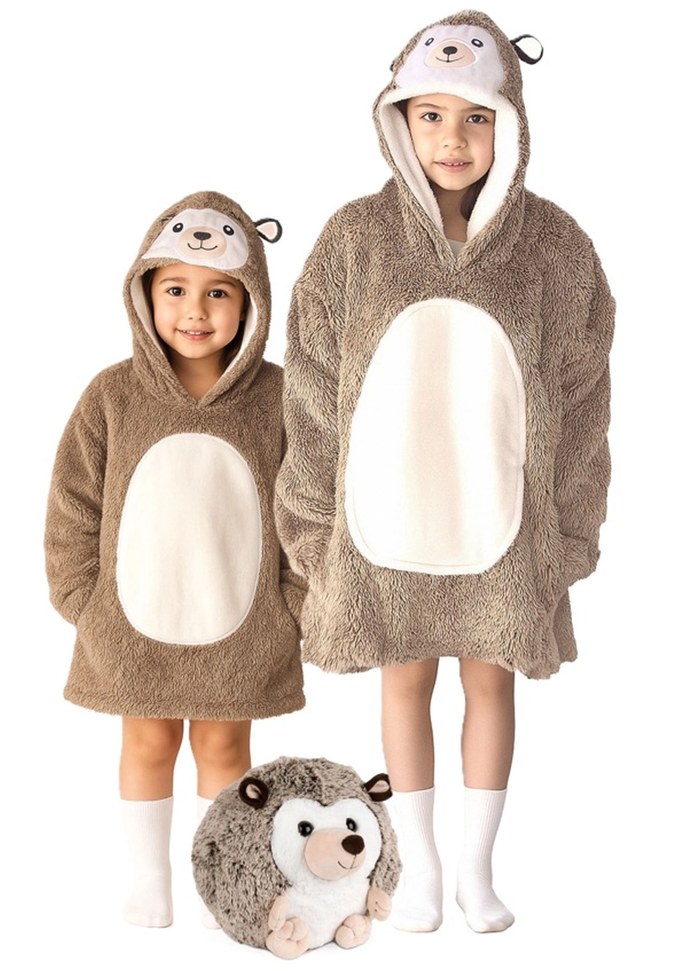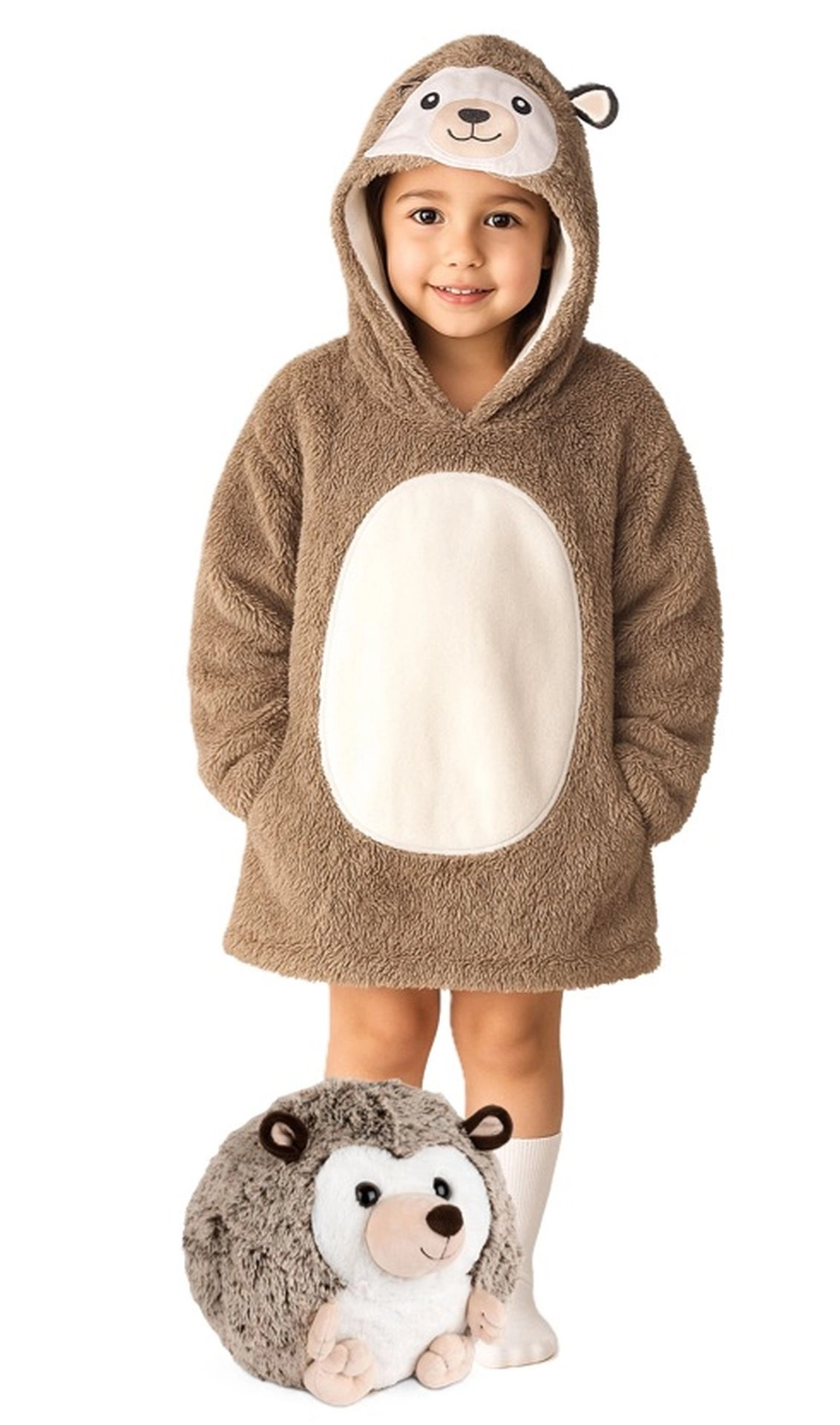 Questa coperta felpa con cappuccio dal design a riccio conquisterà ogni bambino con la sua morbidezza e la struttura soffice. Grazie alla combinazione di flanella e pile sherpa offre massimo calore e comfort senza limitare i movimenti. È perfetta per il relax in casa, guardare la TV e anche per le attività all’aperto.