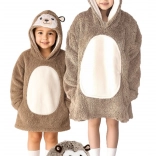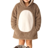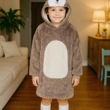 Il pratico grande cappuccio con viso animale scalda testa e orecchie, mentre la capiente tasca frontale mantiene le mani al caldo e contiene anche piccoli oggetti. La lunghezza al ginocchio e il taglio ampio oversize assicurano che i bambini stiano al caldo ovunque si trovino.