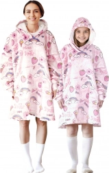 Il design pratico è completato da un ampio cappuccio e da una tasca a marsupio spaziosa per le mani o piccoli oggetti. La giocosa stampa rosa a tema dolci farà felice ogni bambino e rende questa coperta-felpa un’ottima idea regalo.