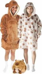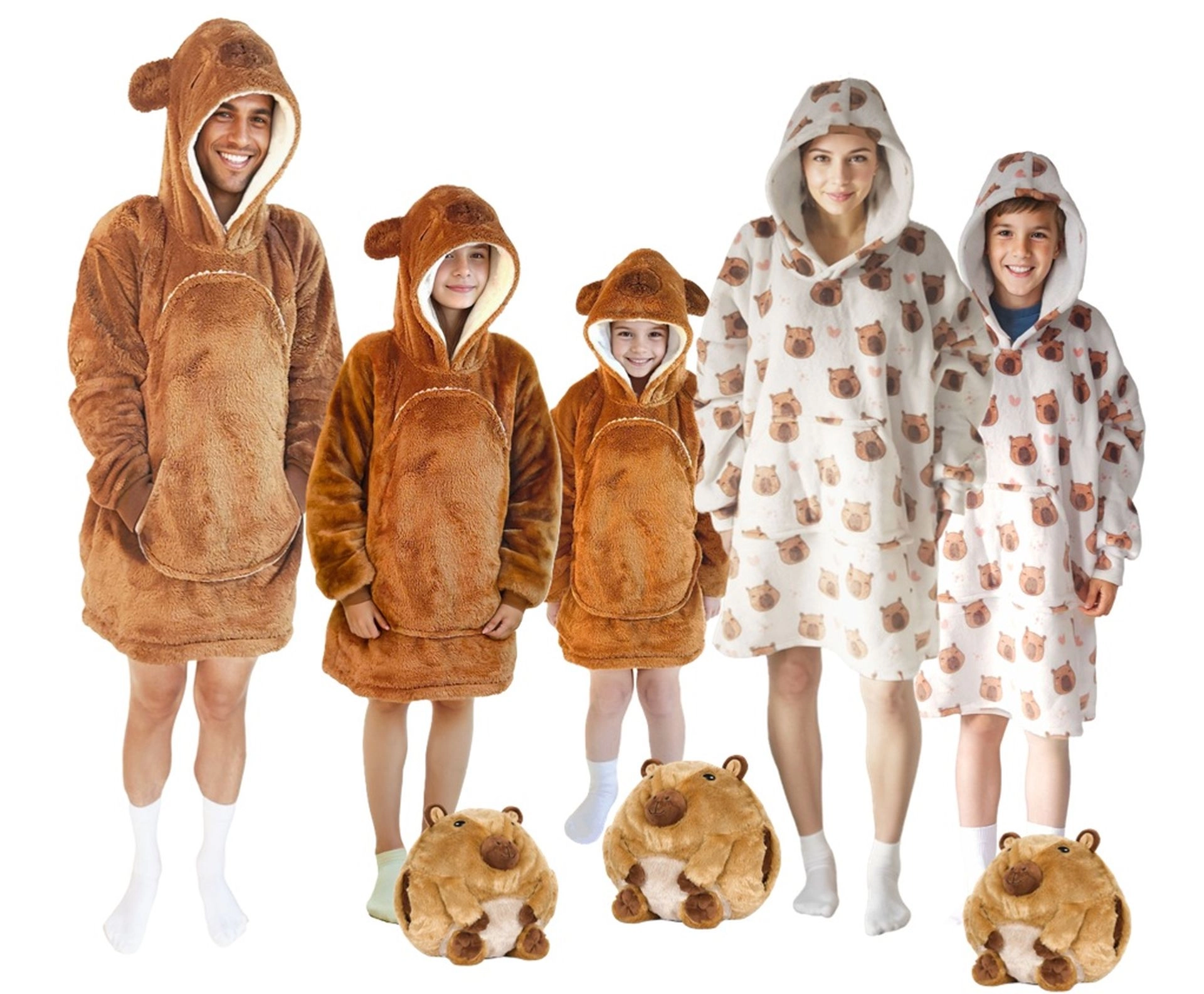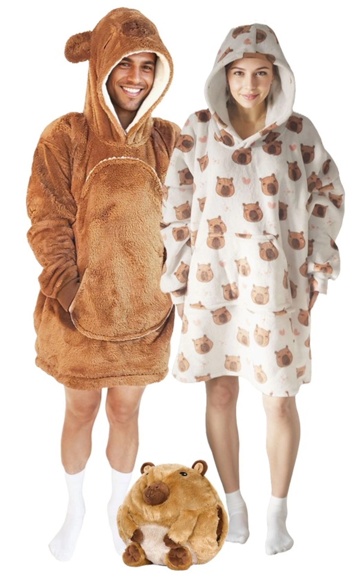 Questa coperta felpa COZY NOXXIEZ con motivo capibara è ideale per il divano, la lettura, il lavoro al PC, il campeggio e i momenti in giardino con tempo più fresco. Il taglio oversize non limita i movimenti e scalda dalle spalle fino alle ginocchia. È un ottimo regalo per lei e per lui, che unisce un design simpatico a una vera funzionalità.