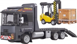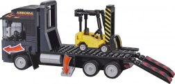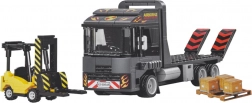 Il camion con pianale e rampe ribaltabili consente di caricare e trasportare il carrello elevatore – proprio come nella realtà.
