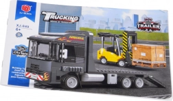 Questo set tecnico porta nel mondo dei bambini il tema del trasporto e della logistica. Costruisci il camion con pianale e rampe ribaltabili, carica il carrello elevatore sul cassone e parti “in viaggio”. La colorazione realistica in blu scuro, grigio e giallo e gli adesivi inclusi conferiscono ai modelli l’aspetto autentico dei veicoli da lavoro.