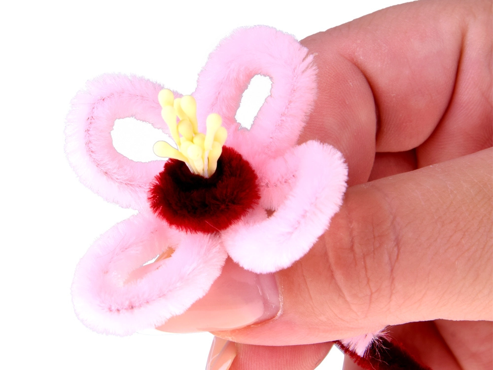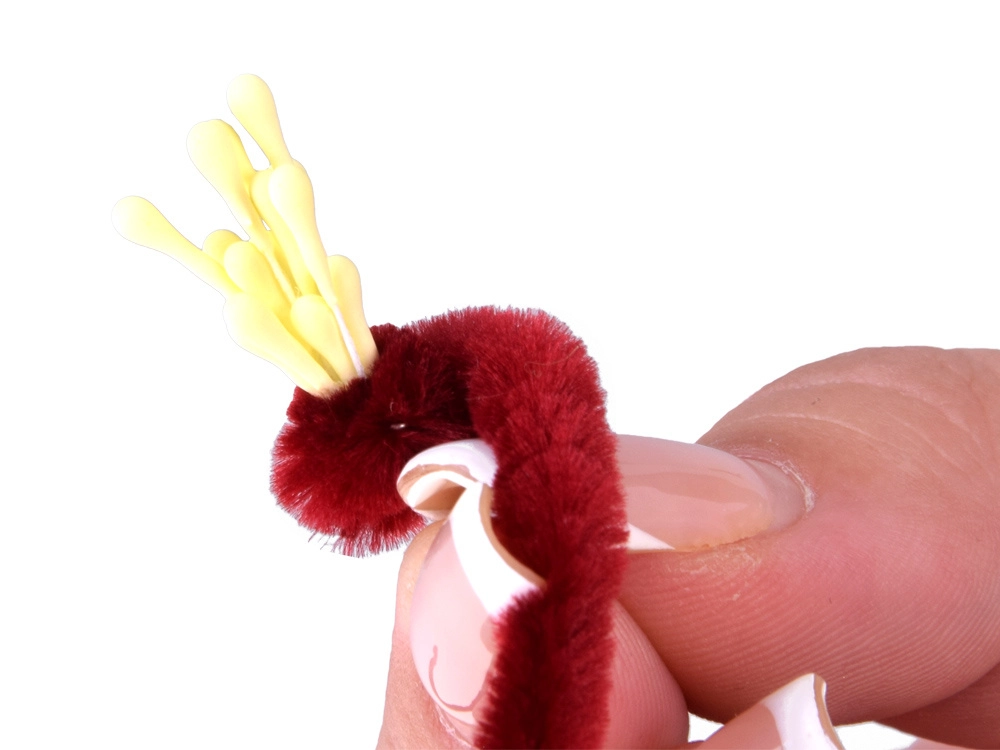 Gli scovolini con superficie vellutata si modellano facilmente in petali, steli e foglie. Consentono una modellazione precisa e un fissaggio stabile delle singole parti del bouquet senza strumenti complessi.
