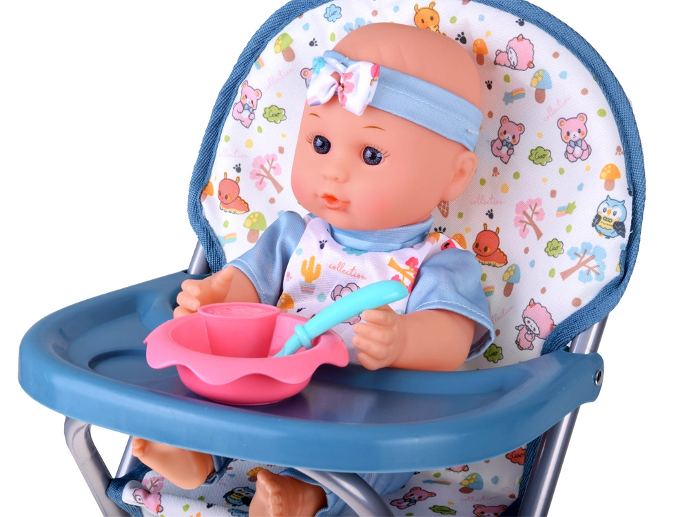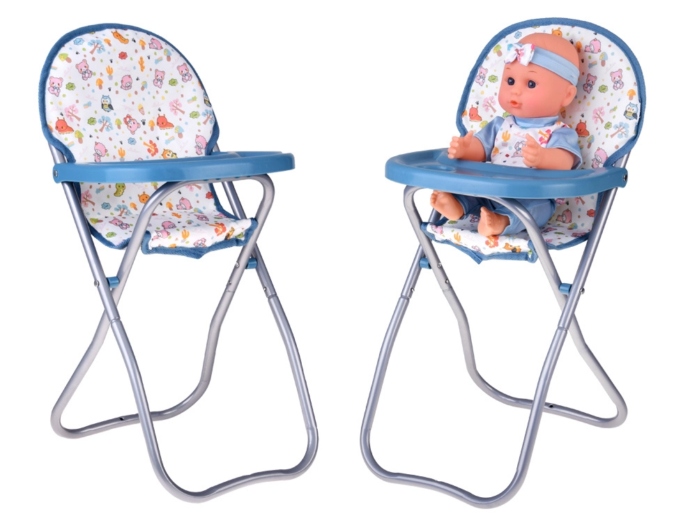 Seggiolone pieghevole stabile con vassoio e spazio per ciotola e posate. Favorisce un gioco realistico di pappa e a tavola con la bambola.