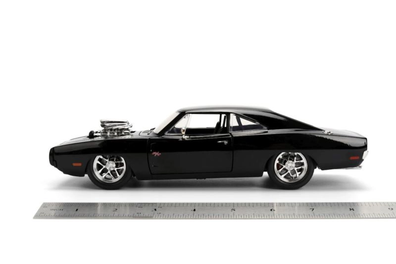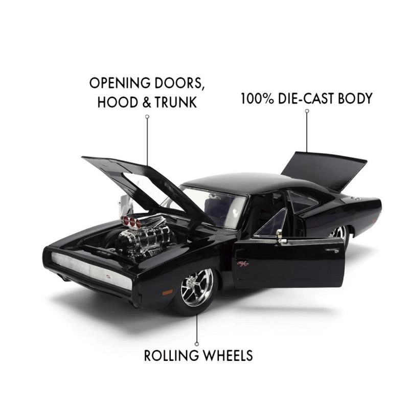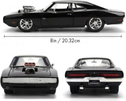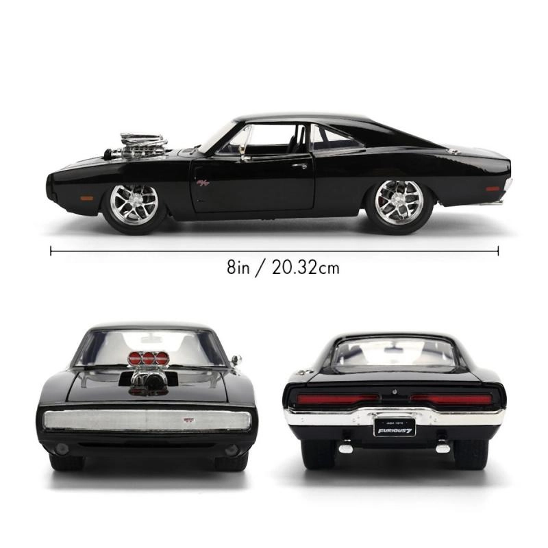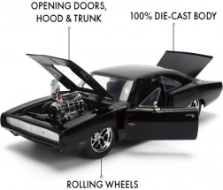 Iconico modello da collezione del 1970 DODGE CHARGER dal film Fast & Furious in scala 1:24, perfetto per gli appassionati di muscle car e della saga cinematografica. Offre costruzione in metallo, porte, cofano e bagagliaio apribili e dettagli realistici, incluso il prominente compressore sul cofano. La lunghezza del modello è di circa 21 cm.