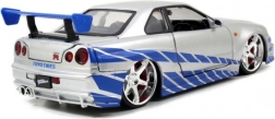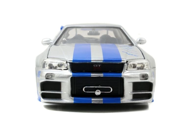 Aggiungi alla tua vetrina una leggenda della scena giapponese: il Nissan Skyline GT‑R R34 dettagliato, ispirato al film Fast & Furious. Il modello combina un robusto corpo in metallo con precisi dettagli in plastica, strisce da corsa blu e un bodykit fedele.