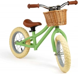 La stilosa bicicletta senza pedali in un delicato verde aiuta i bambini a sviluppare in modo naturale equilibrio e sicurezza nella guida. Grazie al robusto telaio in metallo, agli pneumatici ad aria, alla sella regolabile in altezza e al pratico cestino in vimini, è ideale per le prime esperienze di guida senza pedali. Soddisfa le norme europee di sicurezza ed è rifinita con vernici atossiche.