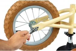 Comoda sella marrone con sgancio rapido per un facile adattamento in altezza. Le morbide manopole garantiscono una presa sicura per le piccole mani.