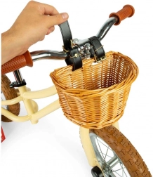 L’elegante bicicletta senza pedali per bambini in color crema aiuta i piccoli a sviluppare in modo naturale equilibrio e sicurezza alla guida. Grazie al robusto telaio in metallo, alla sella regolabile e al pratico cestino in vimini, è la scelta ideale per i primi passi verso la bici a pedali. La balance bike offre un design leggero senza pedali, gomme pneumatiche color crema, sella regolabile in altezza e manopole in gomma per una presa sicura.