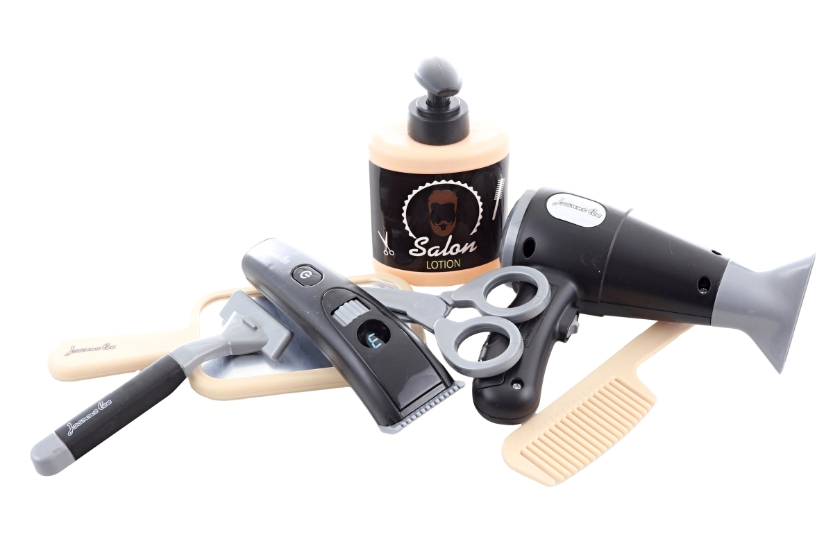 Regalate ai bambini un’esperienza realistica da salone di bellezza. Questo set da parrucchiere comprende una pratica cintura in tessuto per riporre ordinatamente gli strumenti, ricchi accessori e un asciugacapelli a batteria che, quando acceso, si illumina ed emette suoni, intensificando la sensazione di un vero lavoro in salone.