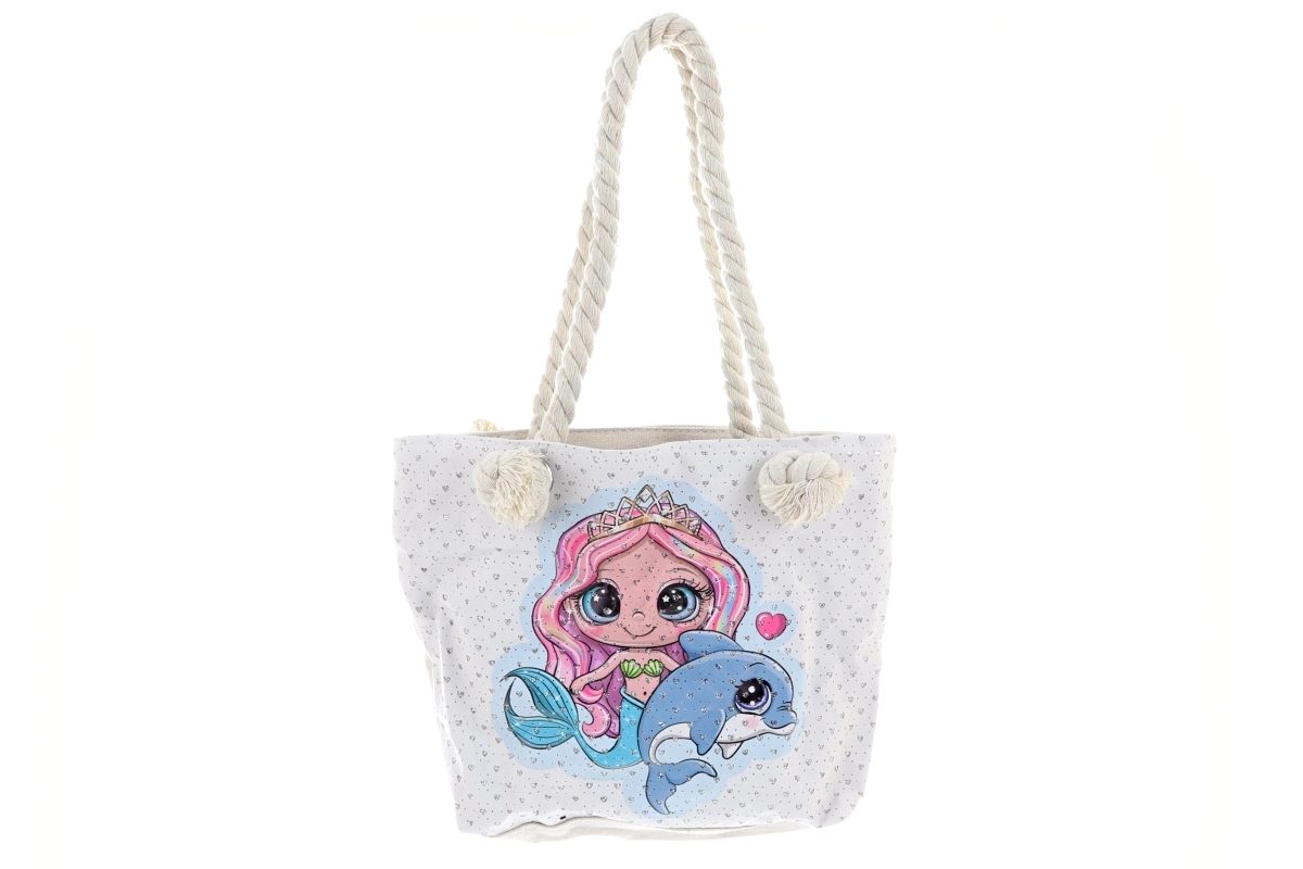 Elegante borsa in tessuto con motivo Sirena, ideale per l’uso quotidiano. Dispone di scomparto principale con cerniera, fronte gommato lavabile con stampa e dimensioni compatte 28 × 20 cm. Il manico comodo di 2 × 23 cm garantisce un facile trasporto a spalla.