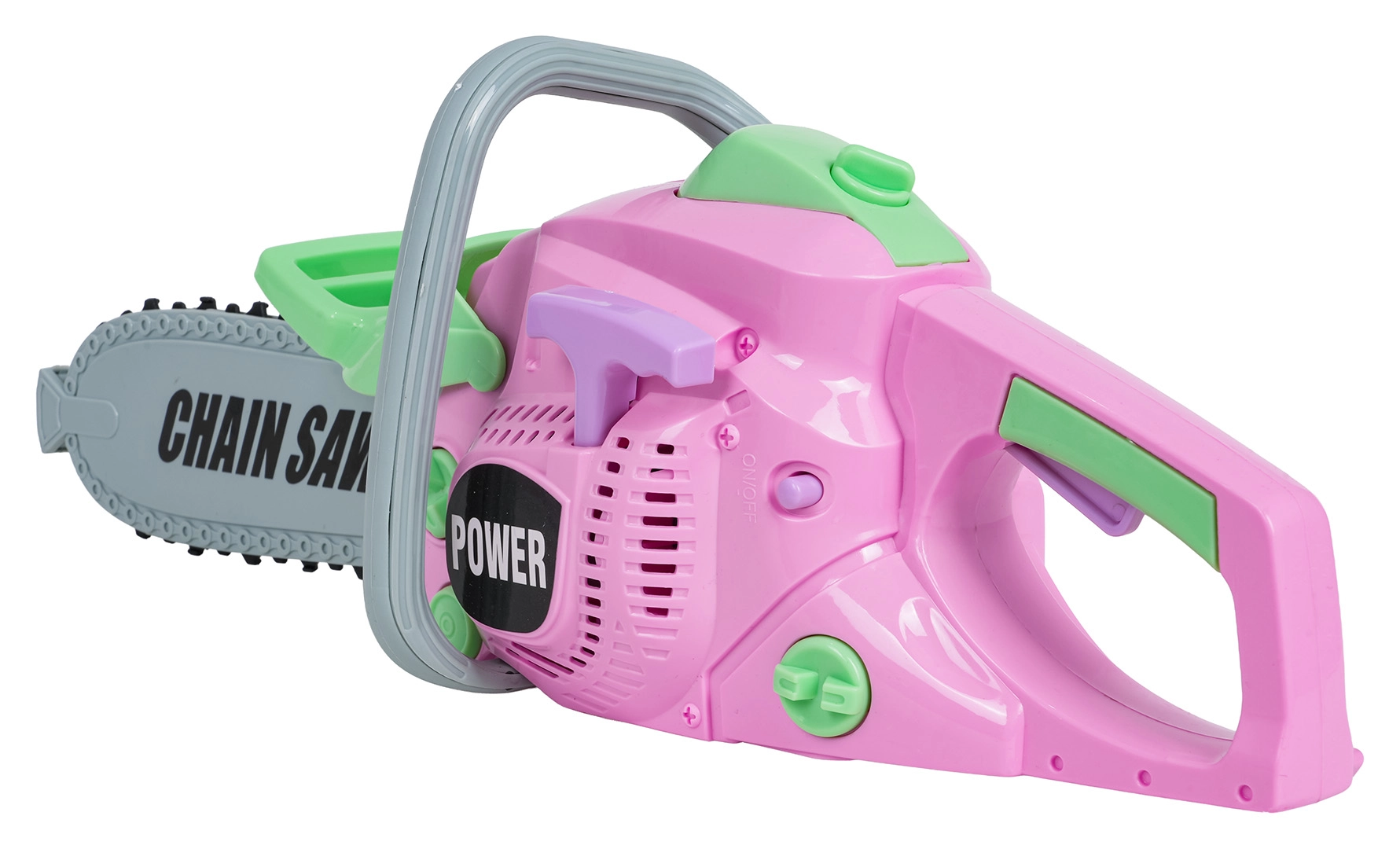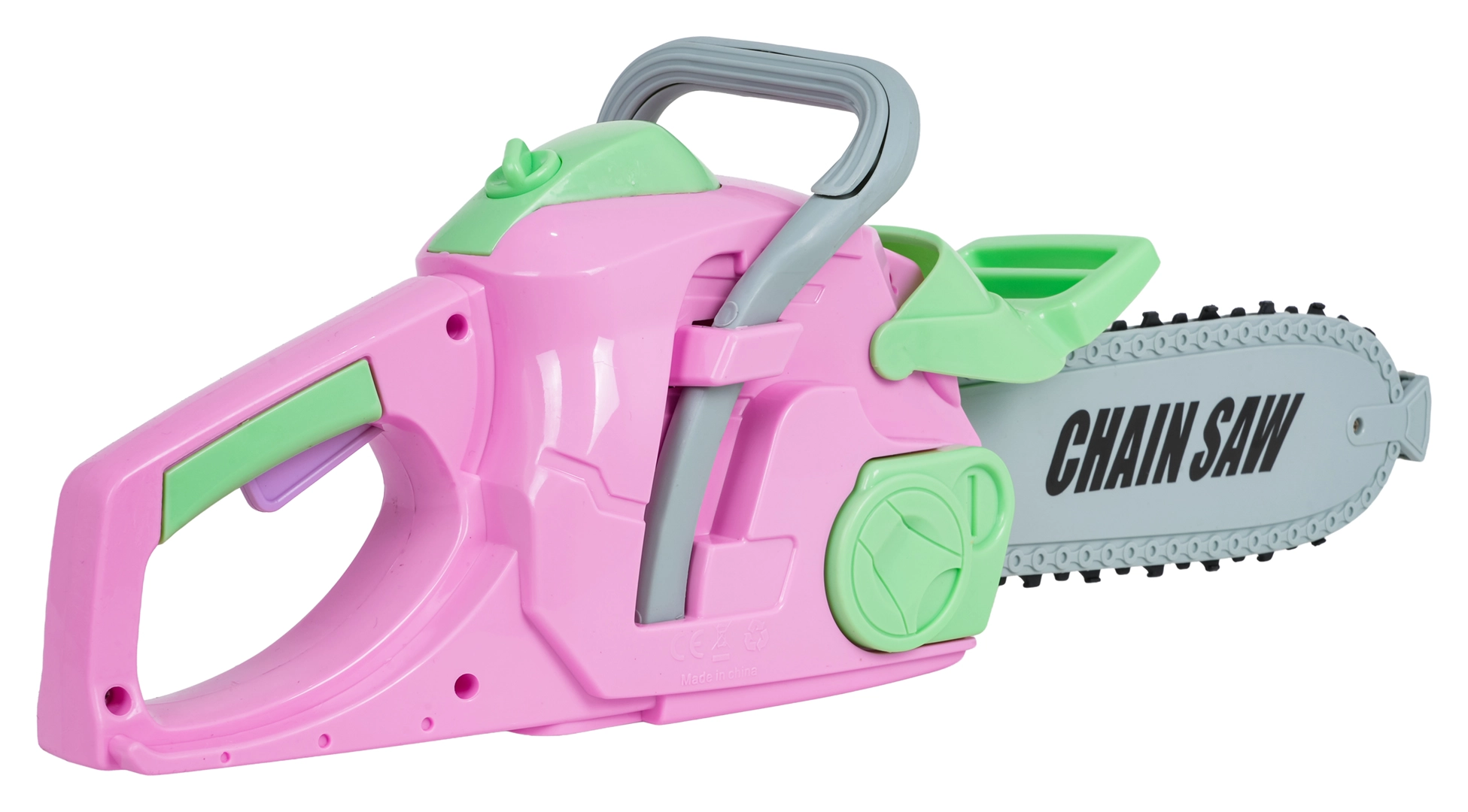 La motosega giocattolo con suono realistico di avviamento e funzionamento incoraggia il gioco imitativo e sviluppa la fantasia. Alimentazione 3× AA 1,5 V (non incluse).