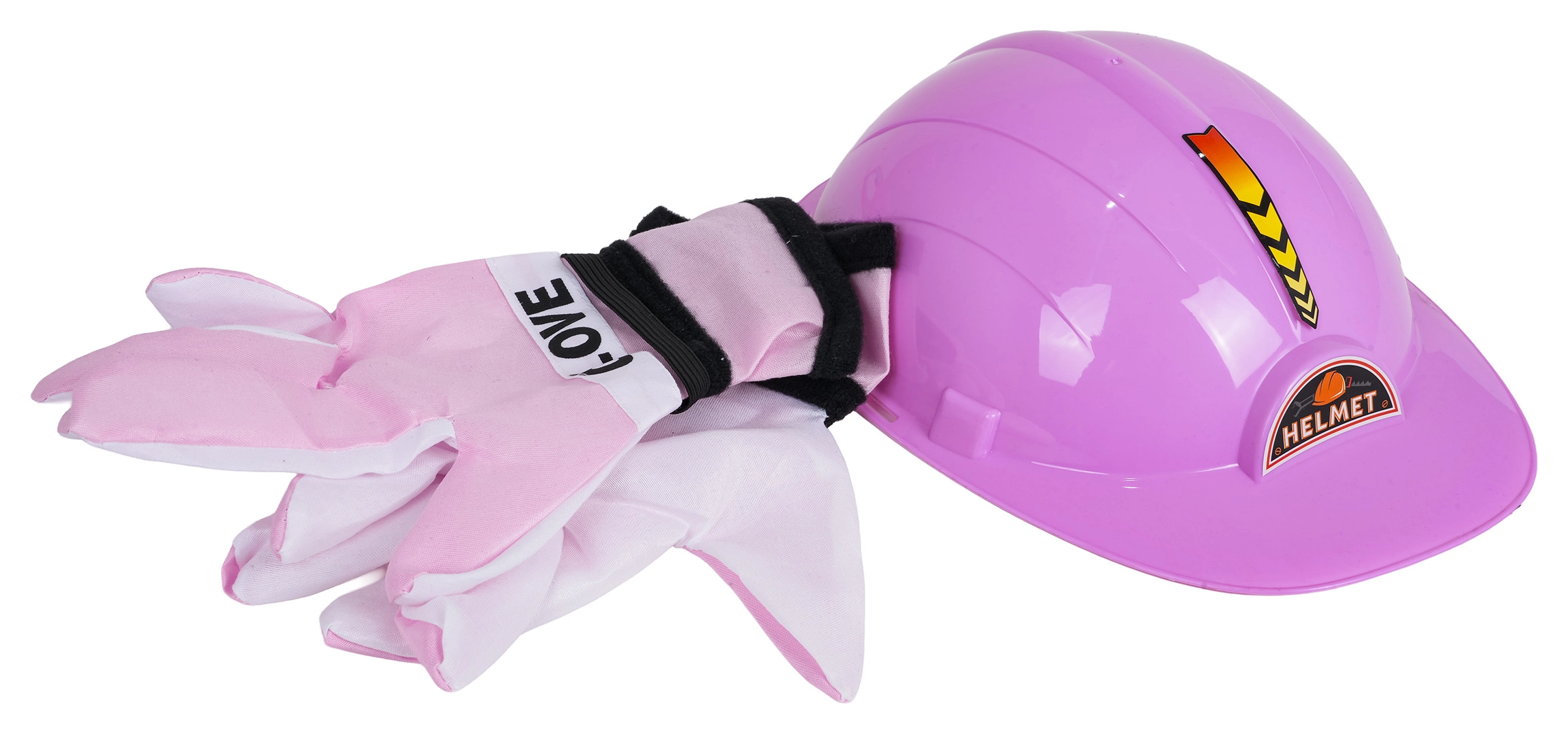 Il set comprende un casco rosa e guanti morbidi per un gioco più sicuro e realistico dei piccoli riparatori.