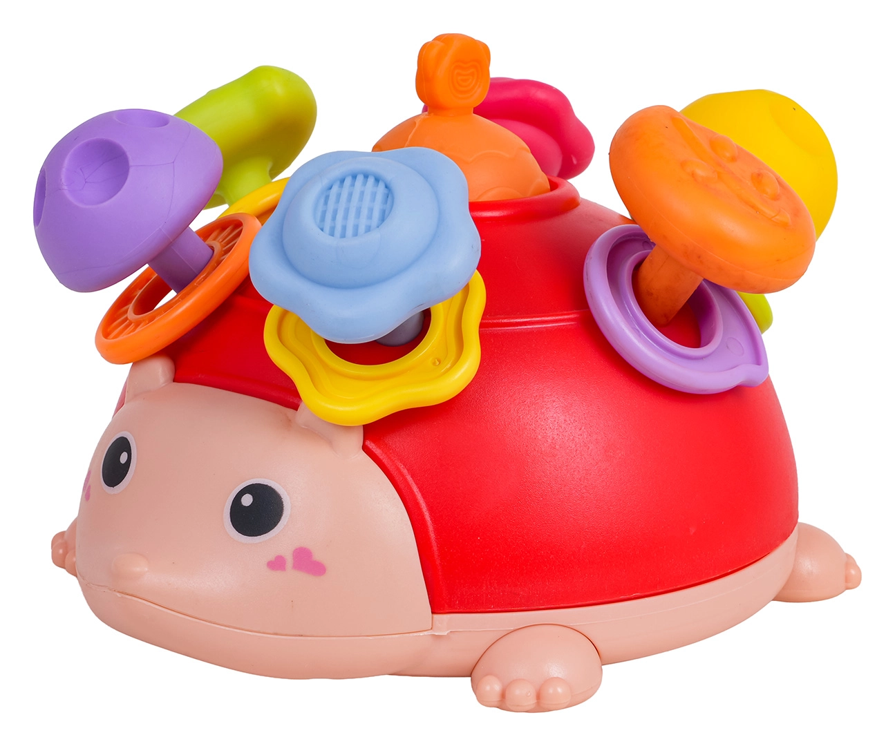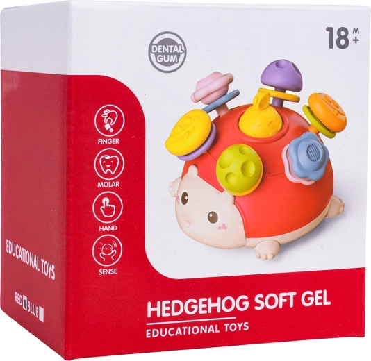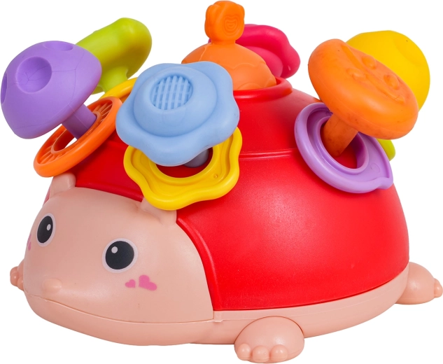 Questo riccio multifunzionale combina gioco sensoriale, manipolativo e motorio in uno. Il bambino può premere, tirare, ruotare e scuotere: ogni azione ricompensa il piccolo esploratore con uno stimolo diverso. Le sporgenze morbide e testurizzate sono piacevoli al tatto e in bocca, gli anelli colorati tintinnano delicatamente e supportano la percezione uditiva.