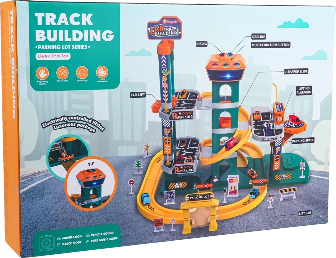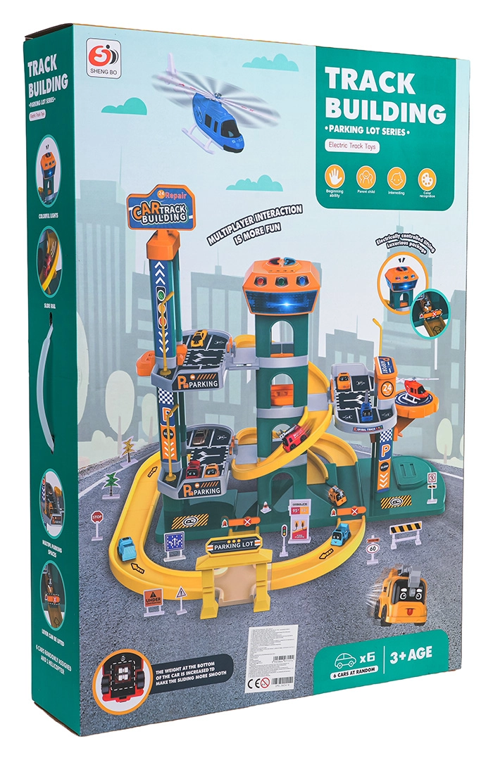 Scopri il grande parcheggio a due piani per bambini dai 3 anni con effetti luminosi e sonori, ascensore automatico e ricchi accessori. Il set colorato in plastica di qualità e sicura offre rampe a spirale, un pannello di controllo con allegre melodie, suoni di veicoli e pulsanti lampeggianti, oltre a 6 macchinine e un elicottero per ore di gioco creativo.