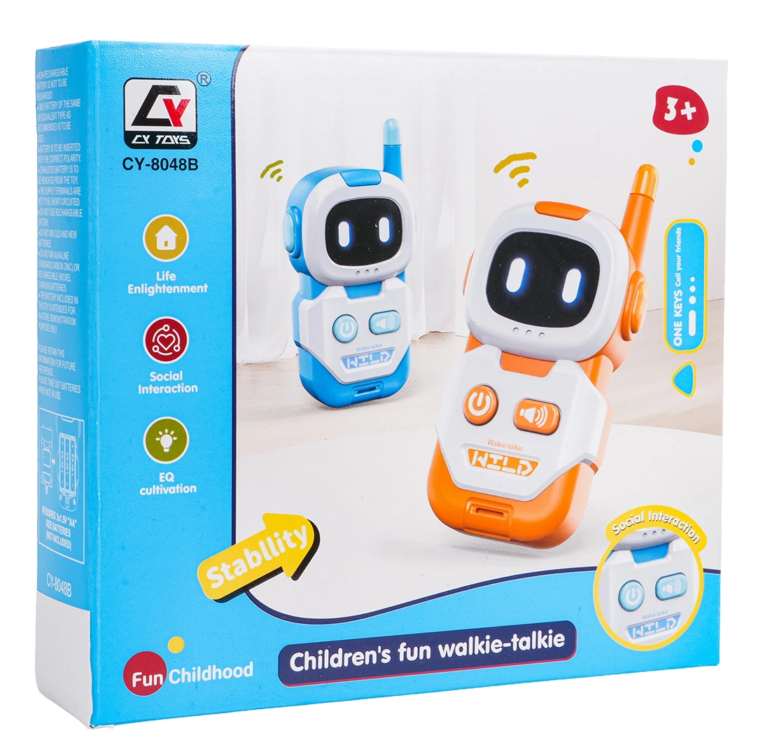 Divertente set di due walkie‑talkie per bambini in stile robot per piccoli esploratori dai 3 anni. Sono leggeri e compatti, si adattano perfettamente alle mani piccole e offrono ampia portata per giochi all’aperto e in casa. Nella confezione non mancano i laccetti da polso per un trasporto sicuro. L’alimentazione è garantita da 3× AA per singolo walkie‑talkie, batterie non incluse.