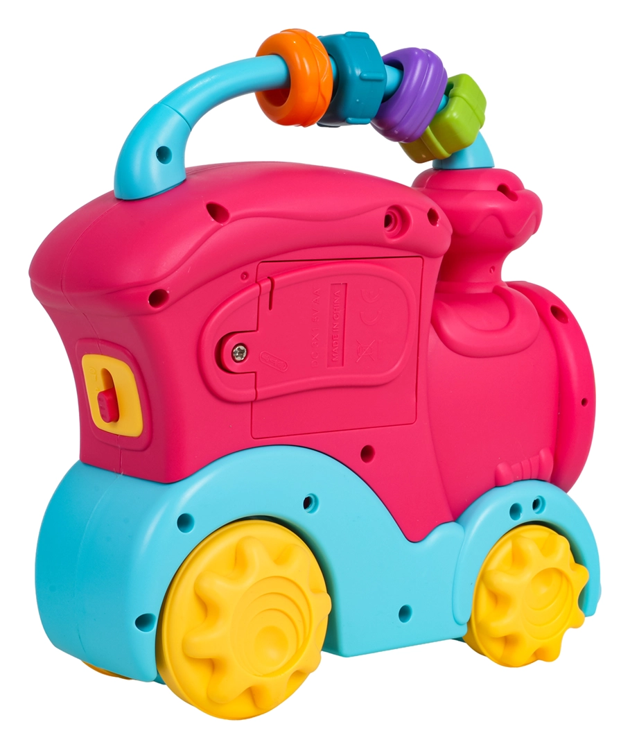 Il giocattolo è progettato per un gioco sicuro dai 12 mesi, ha regolazione del volume a due livelli e grazie ai colori vivaci stimola la percezione visiva. L’impugnatura ergonomica facilita il trasporto e la spinta sul pavimento. Il trenino è alimentato da 3× AA 1,5 V (non incluse).