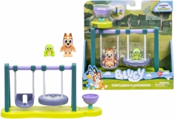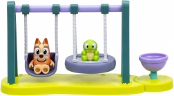 Questo colorato mini set di gioco con altalene farà felici tutti i piccoli fan di BLUEY. Due altalene funzionanti e un piattino/giostrina rotante invitano a infinite storie al parco giochi. I bambini possono sedere Bingo e la tartarughina, dondolarli avanti e indietro e poi farli girare finché non scoppiano di gioia.