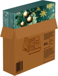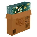 Cartone laminato robusto nella combinazione verde‑oro e fiocco in tessuto lo trasformano in un elemento decorativo natalizio. Sta benissimo sotto l’albero e sulla credenza.