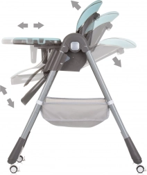 Il doppio vassoio con parte superiore removibile semplifica la manutenzione e lo scorrimento in 4 posizioni si adatta a ogni situazione. L’archetto con giochini intrattiene il bebè, mentre tu puoi preparare la tavola in tranquillità. Le quattro ruote facilitano gli spostamenti in casa e il cesto portaoggetti mantiene a portata di mano tutti gli accessori necessari. Dopo i pasti, richiudi il seggiolone in modo rapido e compatto per risparmiare spazio.