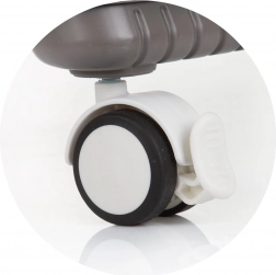 Quattro ruote per muoversi agevolmente in casa e struttura pieghevole per risparmiare spazio quando non in uso.