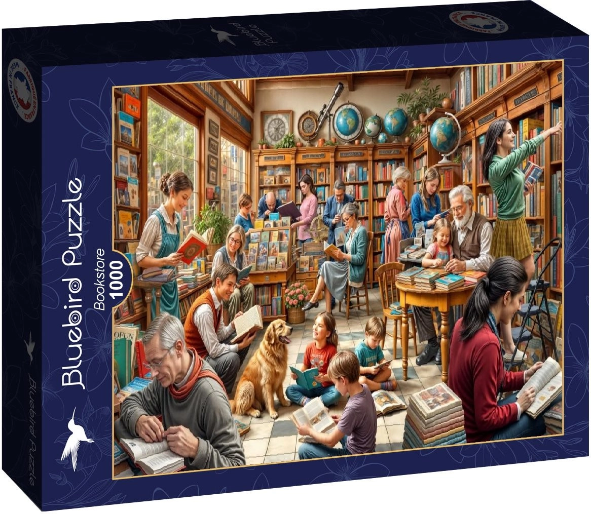 Scopri la magia del mondo dei libri con il puzzle a tema libreria del brand BLUEBIRD. Questo puzzle con 1000 pezzi offre un'illustrazione dettagliata e, una volta completato, crea un'immagine di 69 × 47,8 cm. Scelta ideale per rilassarsi, allenare la pazienza e la concentrazione.