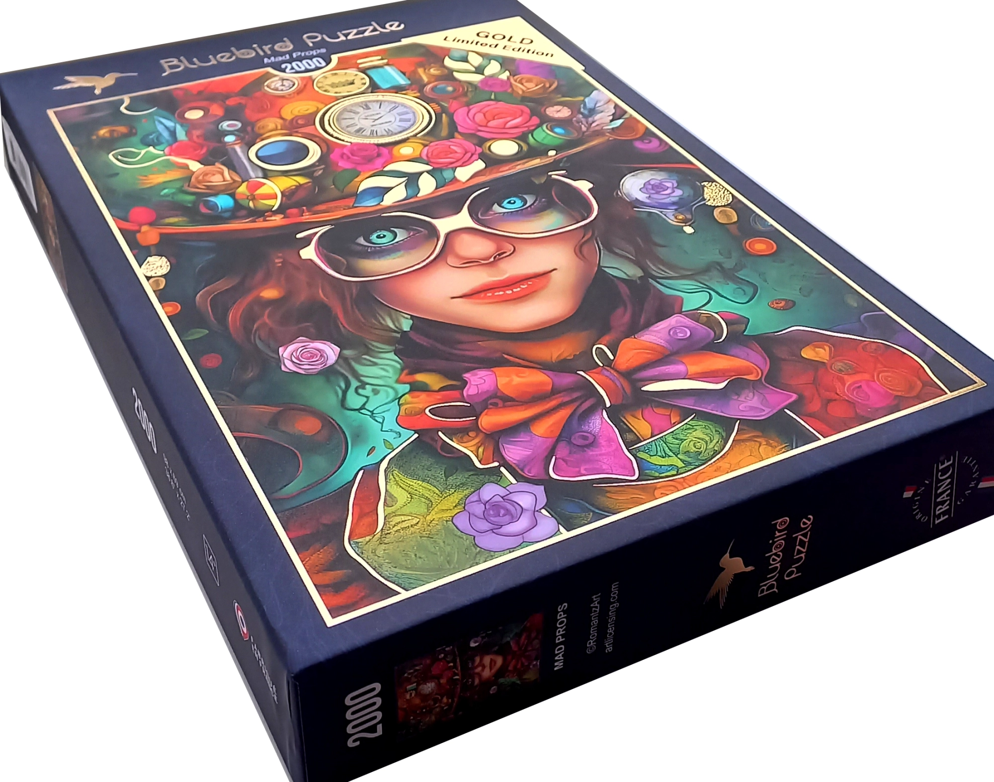 Scopri la lavorazione di lusso della linea Bluebird Gold Edition. L’edizione limitata “Cappello Matto” non porta solo un motivo originale, ma anche parti finemente dorate, che donano all’immagine finale uno splendore e una profondità eccezionali. Grazie al cartone di qualità e al taglio preciso, i pezzi si incastrano perfettamente e comporre il puzzle è un piacere.