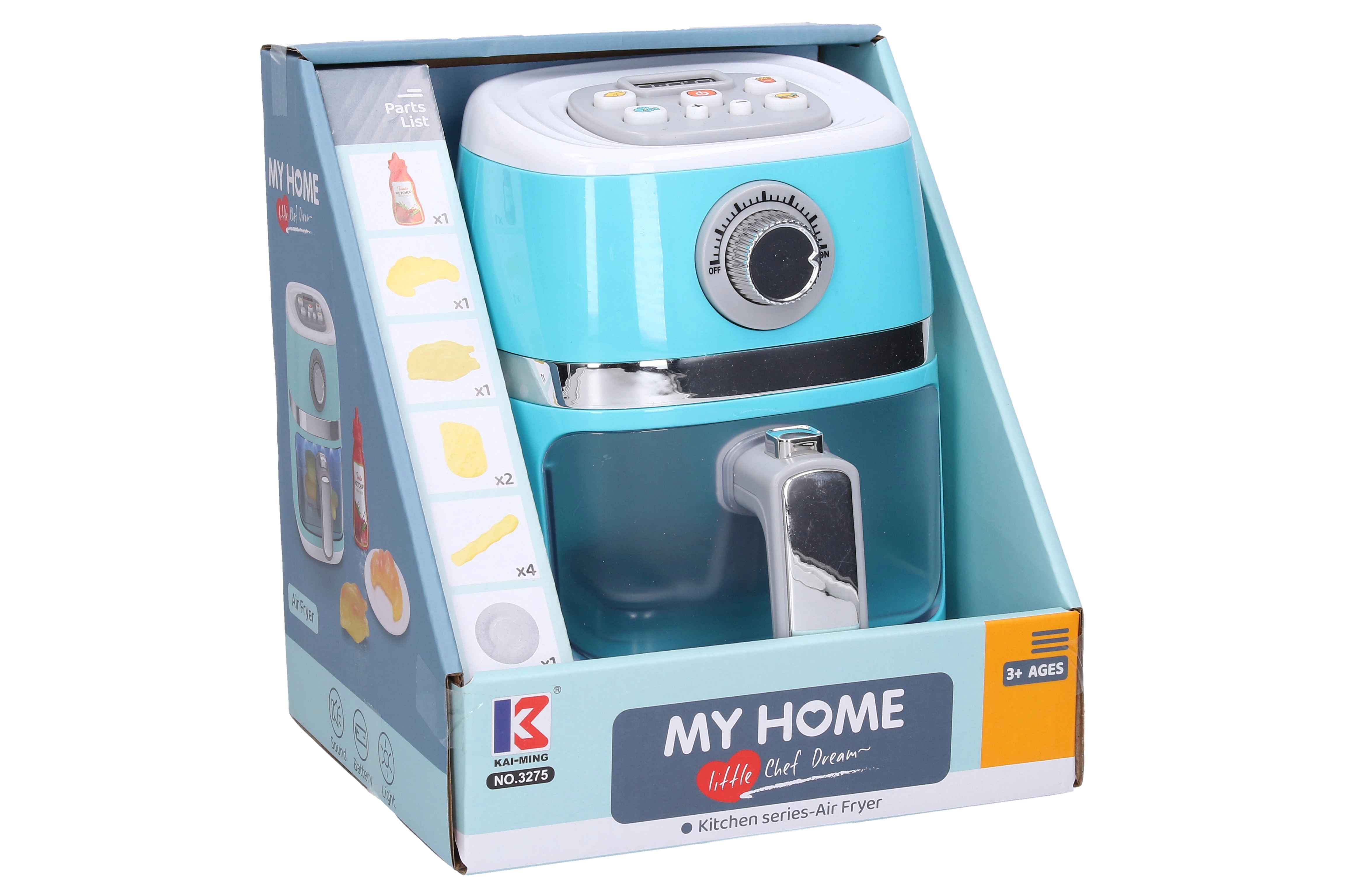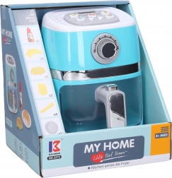 Divertente friggitrice giocattolo per piccoli chef che offre un'esperienza di cucina realistica. Dopo aver inserito i cibi e acceso, il colore cambia ed è accompagnato da effetti luminosi e sonori. La confezione include alimenti finti per il gioco, così i bambini possono iniziare subito. Alimentazione con 3× batterie AA (non incluse).