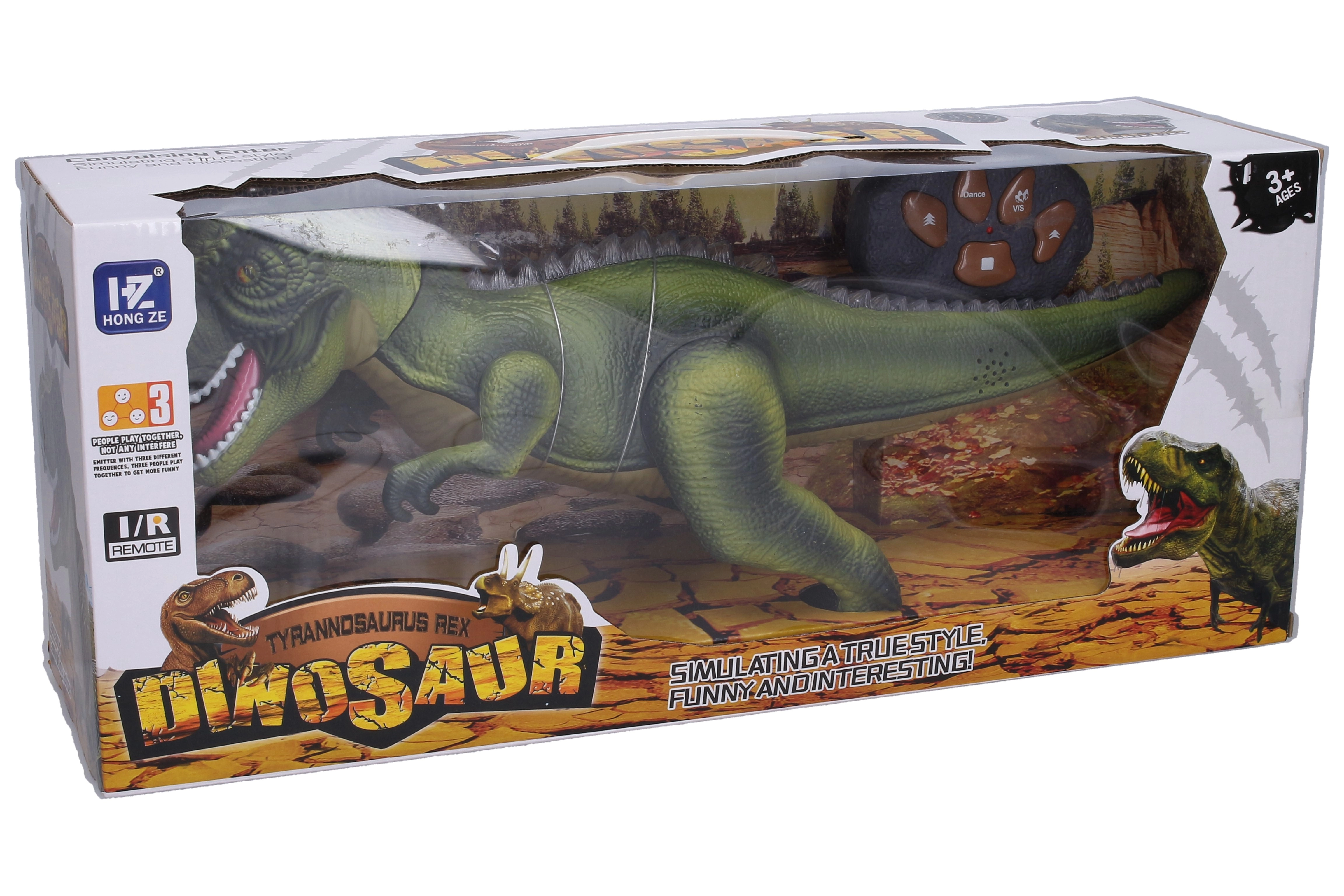 Dino Tyrannosaurus RC con effetti porta un gioco dinamico ricco di movimento, musica ed effetti luminosi. Con il telecomando a infrarossi puoi scegliere facilmente avanzamento veloce o lento, attacco oppure la divertente modalità danza. Il giocattolo è ideale per sviluppare fantasia e motricità.