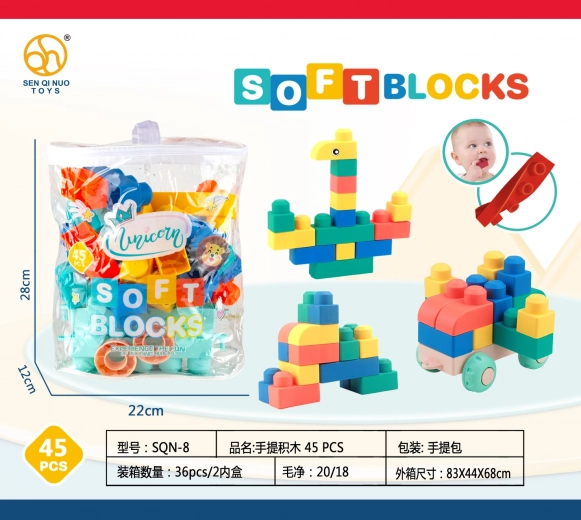 Questo colorato set di mattoncini morbidi offre 45 pezzi per un gioco sicuro e stimolante. Il materiale è delicato sui bambini e sull’ambiente; i mattoncini sono leggeri, privi di bordi taglienti e, una volta piegati, tornano alla forma originale. Manutenzione facile: basta sciacquare o bollire, i colori rimangono sempre intensi.