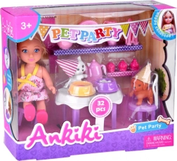 Il set Ankiki Pet Party trasforma ogni giorno in una gioiosa festa di compleanno. I bambini possono far sedere la bambola al tavolino, servire il tè con il servizio da tè rosa, distribuire dolcetti e cupcake e prendersi cura dei due adorabili animaletti – la gattina bianca e il cagnolino marrone. I colori pastello e il design amichevole stimolano la fantasia e creano un’atmosfera di gioco dolce.